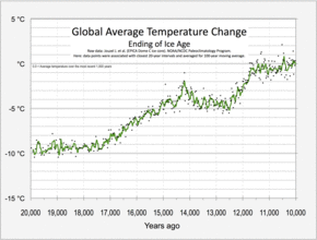 The Paleolithic coincides almost exactly with the Pleistocene epoch of geologic time, which lasted from 2.6 million years ago to about 12,000 years ago.[11] This epoch experienced important geographic and climatic changes that affected human societies.