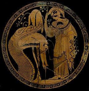 Herodotus records that a serpent lived in a crevice on the north side of the summit of the Athenian Acropolis[128] and that the Athenians left a honey cake for it each month as an offering.[128] On the eve of the Second Persian invasion of Greece in 480 BC, the serpent did not eat the honey cake[128] and the Athenians interpreted it as a sign that Athena herself had abandoned them.[128] Another version of the myth of the Athenian maidens is told in Metamorphoses by the Roman poet Ovid (43 BC – 17 AD); in this late variant Hermes falls in love with Herse. Herse, Aglaulus, and Pandrosus go to the temple to offer sacrifices to Athena. Hermes demands help from Aglaulus to seduce Herse. Aglaulus demands money in exchange. Hermes gives her the money the sisters have already offered to Athena. As punishment for Aglaulus's greed, Athena asks the goddess Envy to make Aglaulus jealous of Herse. When Hermes arrives to seduce Herse, Aglaulus stands in his way instead of helping him as she had agreed. He turns her to stone.[136]