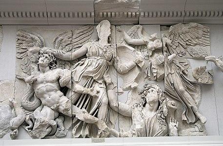 Relief of Athena and Nike slaying the Gigante Alkyoneus (?) from the Gigantomachy Frieze on the Pergamon Altar (early second century BC)