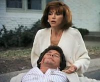 By 1985, Bobby and Pam realize that they want to be together. Bobby proposes, Pam accepts and they spend the night together. The next day, Bobby is tragically cut down by a car driven by her half-sister, Katherine Wentworth (Morgan Brittany), and dies hours later, leaving Pam heartbroken.[44] Pam goes on to make television history by dreaming Bobby's death. Pam awakes and finds Bobby in the shower, alive and well.[45] Pam receives good news at the end of the 1986–87 season finale: she is finally able to conceive a baby, after confirming that there would be no health risks involved. However, she never gets that chance.[46] While calling her husband to tell him the good news, she is in a massive auto accident where she hits an oil tanker and is severely burned in a subsequent fire. While recovering from her burns, she decides to get away from the Ewings and everyone else, including her son, disappear and divorce Bobby for a second time.[46]