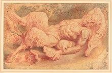 Disturbed in his secluded afternoon naps, Pan's angry shout inspired panic (panikon deima) in lonely places.[30][31] Following the Titans' assault on Olympus, Pan claimed credit for the victory of the gods because he had frightened the attackers. In the Battle of Marathon (490 BC), it is said that Pan favored the Athenians and so inspired panic in the hearts of their enemies, the Persians.[32]