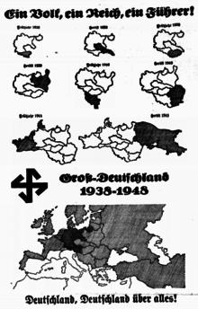 Nazi propaganda also used the political slogan Ein Volk, ein Reich, ein Führer ("One people, one Reich, one leader"), to enforce pan-German sentiment in Austria for an "Anschluss".