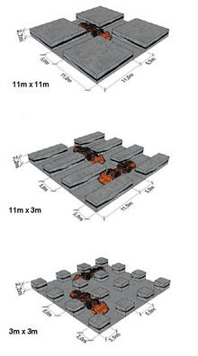 4th Phase - The rectangular pillars of 11m by 3m are cut in half by a new gallery, leaving remnant pillars (final) with the dimension of 3m by 3m.