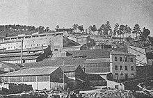 Minas da Panasqueira (Panasqueira Mine) is named after the location of initial mining exploration. At the end of the 19th century the area was covered with gorse, broom bush and several species of low-lying bushes and pines. The stony ground was totally unsuitable for cultivation of seed or cereal. The population of the neighbouring village of Cebola (presently S. Jorge da Beira) used the folds in the slopes to make terraces where they planted potatoes, corn or pasture. In this manner small cultivation areas divided in narrow terraces with some fruit trees and large chestnut trees were created in the three small valleys of (Madurrada, Vale Torto and Panasqueira).