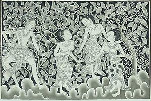 The kakawin Smaradhana originally was the work of the poet Mpu Dharmaja in early 12th century. However, it was later incorporated as a prelude to the Panji tales. This story tells about the disappearance of Kamajaya and his wife, Kamaratih from svargaloka who were burnt by the fire of Shiva. The spirits of Kamajaya and Kamaratih fell upon the earth and were incarnated several times as mortal human beings.[14] The main characters of Panji cyle are Prince Panji and Princess Kirana, the notable incarnations of Kamajaya and Kamaratih on earth. The following are several episodes of the compilation of Panji stories: