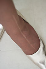 Sheer-to-waist pantyhose is sheer throughout, with the panty portion being the same thickness and color as the leg portion, and are designed for use with high-slit gowns, miniskirts, hot pants, or lingerie. Often sheer-to-waist pantyhose will be reinforced along and on either side of the seam in the middle of the panty. Often sheer-to-waist pantyhose comes with sandal toes - invisibly reinforced toes part.