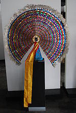 The city has a total of eleven murals on public buildings as well as private houses. The Fernando Gutierrez Barrios Auditorim has a high relief mural depicting sports in the Totonacapan region.[1] The Chapel of Cristo Rey is located on Madero Street and is modeled after the Cathedral of Notre Dame in Paris. It contains a mural by Cano about the history of the city of Papantla.[2] In addition to the murals, the Monument to the Voladores is located on a hill in the center of the city.[1] This hill also serves as a scenic lookout and contains a mural which narrates the ceremony from the cutting of the tree to the execution of the descent.[2]