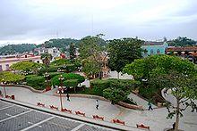 Papantla (Spanish: [paˈpantla] ) is a city and municipality located in the north of the state of Veracruz, Mexico, in the Sierra Papanteca range and on the Gulf of Mexico.[1] The city was founded in the 13th century by the Totonacs and has dominated the Totonacapan region of the state since then. This is the home of vanilla, which is native to this region, the Danza de los Voladores and the El Tajín archeological site, which was named a World Heritage Site.[2] Papantla still has strong communities of Totonacs who maintain the culture and language.[3] The city contains a number of large scale murals and sculptures done by native artist Teodoro Cano García, which honor the Totonac culture.[4] The name Papantla is from Nahuatl and most often interpreted to mean "place of the papanes" (a species of crow). This meaning is reflected in the municipality's coat of arms.[1][2]