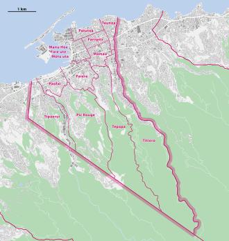 The commune of Papeete is subdivided into eleven quartiers (wards):[7][8][9][10][11]