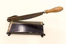 A paper cutter, also known as a paper guillotine or simply guillotine, is a tool often found in offices and classrooms, designed to cut a large amount of paper sheets to be able to issue your document with a straight line in one quick swift slice.