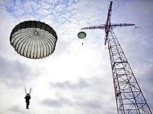 By the 1930s, parachutists could be trained by jumping from parachute towers rather than from aircraft.[19][20] Accordingly, Stanley Switlik and George P. Putnam built a 115-foot-tall (35 m) tower on Switlik's farm in Ocean County, New Jersey.[21] The tower, which was designed to train airmen in parachute jumping, was first publicly used on June 2, 1935, when Amelia Earhart jumped from it.[21]