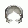 Animation. Left parietal bone removed. Squamosal sutures shown in red.