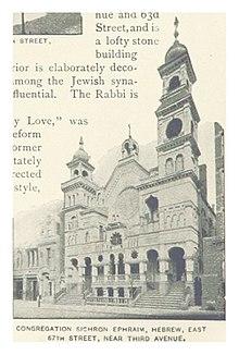 Congregation Zichron Ephraim was established by Rabbi Bernard Drachman and Jonas Weil to promote Orthodox Judaism as an alternative to Reform Judaism popular on the Upper East Side.[2]