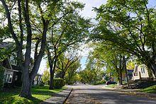 Parkdale is a mature, inner city neighbourhood in the city of Calgary, Alberta along the north bank of the Bow River between the communities of West Hillhurst and Point McKay. It is bounded on the south by the Bow River, 28 St NW to the east, Shaganappi Trail NW to the west and on the north by 16th Avenue. Parkdale is in close proximity to both the Foothills Medical Centre and the Alberta Children's Hospital constructed in 2006, as well as the University of Calgary. Memorial Drive provides access to downtown Calgary and to Highway 1 which leads to the Rocky Mountains. Parkdale was annexed to the City of Calgary in 1910 when Calgary began to experience a "major economic and building boom."[4]:77 The boom ended in 1913 and further development of the Parkdale Addition as it was called, was halted because of World War I.[4][5][6][7][8] Following World War II in the 1950s the dominant housing type that characterized Parkdale, was the bungalow.[4]:85 By 2014 Parkdale, like other inner city communities in Calgary, was experiencing gradual gentrification with small cottage-style bungalows being replaced by spacious flat roofed, Prairie School Frank Lloyd Wright inspired infills[9] attracting young families with children[10] away from the long commute suburbs to inner city ease of access to downtown, transit and work.[11]