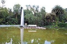 The park is located on Avenida México and Calle de Michoacán in Colonia Hipódromo, only two blocks from Avenida Insurgentes, one of the city’s main arteries.[3] It was the first modern park, created with an architectural design. It copies many of the elements of European gardens, such as ponds and walkways.[4] It has an extension of nine hectares in an elliptical design.[4] The park differs from other major parks such as the Alameda Central or Parque España. More traditional parks in Mexico City have paths that cut diagonally through them, but Parque Mexico's paths are more “organic” and less rigid, wandering around the various attractions.[4] The park hosts various cultural events, neighborhood gatherings and considered to be fashionable place to meet people.[1] One can see children playing soccer and riding bikes while adults stroll or exercise or just relax on the benches.[3]