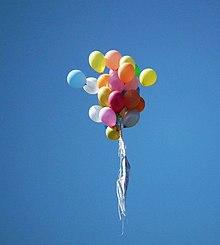 A toy balloon or party balloon, is a small balloon mostly used for decoration,[1] advertising and children's toys. Toy balloons are usually made of rubber or aluminized plastic, and inflated with air or helium. They come in a great variety of sizes and shapes, but are most commonly 10 to 30 centimetres in diameter. Toy balloons are not considered to include "sky lanterns" (hot-air paper balloons), although these too are or were used as child toys in some parts of the world.