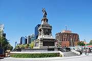Liberal general Porfirio Díaz seized president power in 1876 after having distinguished himself as a leader in the war against the French Intervention. As president, he fully supported the embellishment of the Paseo de la Reforma with statuary representing Mexico's heroes through its history, creating "monuments worth of the culture of this city, and whose sights remind of the heroism with which the nation fought against the Conquest in the sixteenth century and for the Independence and Reform in the present."[7] Initially, liberal General Vicente Riva Palacio, grandson of liberal leader of independence Vicente Guerrero, was involved in projects to raise the capital's profile when he served as Díaz's Minister of Development (fomento) (1876-1879). As part of the centralizing impetus of Díaz's government, the Paseo de la Reforma was to include statues of heroes and cultural eminences of Mexico's constituent states, although some state leaders objected to the reassertion of traditional Mexico City's power.[8]