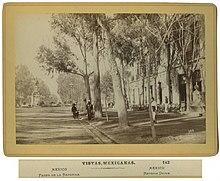 Despite opposition, the project continued. After a competition, it was assigned to the brothers Juan and Ramón Agea under the supervision of the Ministry of Development, Colonization, Industry and Commerce, headed by Luis Robles Pezuela. Of the original 3.15 km-long project, only one part was completed between 1864 and 1865, a road 20 meters wide, which was enormous for those days, without a central median, only a few areas on the side reserved for horses to rest. There were practically no buildings along the boulevard and sidewalks were not considered necessary.[4][5]