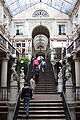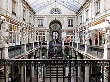 The Passage Pommeraye is a small shopping mall in central Nantes, France, named after its property developer, Louis Pommeraye. Construction started at the end of 1840 and was completed on 4 July 1843. The Passage Pommeraye is a passage between two streets, the rue Santeuil and rue de la Fosse, with one 9.40 m higher than the other. Midway, there is a flight of steps and the mall then continues on another floor. Two architects, Jean-Baptiste Buron and Hippolyte Durand Gasselin, contributed to its design, which is very elaborate and includes renaissance style sculptures. The Passage Pommeraye has been classified as a historic monument since 1976.