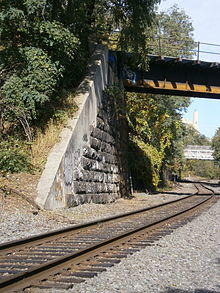 After crossing the Passaic River on the Point-No-Point Bridge[2] 40°44′30″N 74°07′16″W / 40.741672°N 74.121095°W, the P&H Line passes over PATH and turns east, parallel to PATH. A track splitting just before the overpass accesses the area south of PATH. The P&H Line then heads east through West Hudson and then across the Harsimus Branch Lift Bridge over the Hackensack River to Marion Junction 40°44′16″N 74°04′25″W / 40.737665°N 74.07372°W, where the Northern Running Track goes north, with most rail traffic.