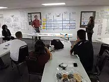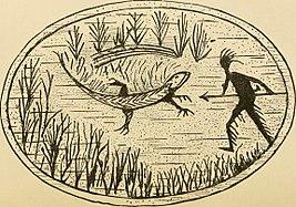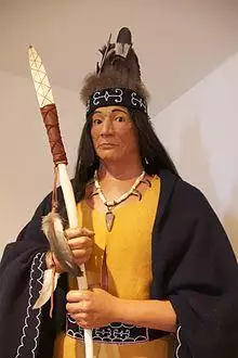 The name "Passamaquoddy" is an anglicization of the Passamaquoddy word peskotomuhkati, the prenoun form (prenouns being a linguistic feature of Algonquian languages) of Peskotomuhkat (pestəmohkat), their autonym or name they used for themselves. Peskotomuhkat literally means "pollock-spearer" or "those of the place where pollock are plentiful",[1] reflecting the importance of this fish in their culture.[2] Their method of fishing was spear-fishing rather than angling or using nets. Passamaquoddy Bay is shared by both New Brunswick and Maine; its name was derived by English settlers from the Passamaquoddy people.