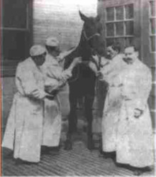 Roux and Yersin grew the bacillus that causes it and studied, thanks to various experiments they did on rabbits, its pathogenic power and symptoms, like the paralysis of the respiratory muscles.[2]:73 It is this last consequence of the diphtheria that provided the two researchers with a valuable clue of the nature of the disease, since it is caused by an intoxication due to a toxin introduced into the organism by the bacillus, that while secreting this particular venom is able to multiply itself: they were therefore inclined to think that the bacillus owed its virulence to the toxin. After filtrating the microbial culture of the Corynebacterium diphtheriae and injecting it into the lab animals, they were able to observe all the typical signs of the sickness. Roux and Yersin established that they were dealing with a new type of bacillus, not only able to proliferate and abundantly reproduce itself, but also capable of spreading at the same time a powerful venom, and they deduced that it can play the role of antigen, that is if they could overcome the delicate moment of its injection, made especially dangerous by the toxin.[2]:74 Some German researchers had also discovered the diphtheria toxin and were trying to immunize some guinea pigs through the use of a vaccine: one of them, Von Behring, Robert Koch's student, stated that he was able to weaken small doses of the toxin. Nonetheless Roux was not convinced by this result, since no-one knew the collateral effects of the procedure, and preferred to use serotherapy since more than one lab study – like the one accomplished by Charles Richet – demonstrated that the serum of an animal vaccinated against the disease included the antibodies needed to defeat it. The anti-diphtheria serum which was able to agglutinate the bacteria and neutralize the toxin was supplied by a horse inoculated with the viral germs, and it was separated from the blood drawn from the horses’ jugular vein. Like it happened for his teacher with the anti-rabies vaccine, Roux needed to test the effectiveness of the product he elaborated, and endured all the stress and ethical dilemmas that the first use of such a risky but also groundbreaking procedure implied. To test the serum two groups of children were chosen from two different hospitals: in the first one, which received the serum, 338 out of 449 children survived, in the latter one, treated with the customary therapies, only 204 out of 520 survived. Once the results were made public by Le Figaro newspaper, a subscription fund was opened to raise the money needed to provide the Institute the number of horses necessary to produce enough serum to satisfy the national demand.[2]:82