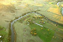 In 1812, four convicts (Swan, Pell, Davis and Swan) and John Tucker jnr were permitted by Governor Macquarie to commence farming on the Paterson River at "Patersons Plains", a location that came to be known as "Old Banks", as a special reward for supplying the Government with 500 cedar logs.[5] Old Banks, in an area first surveyed by Henry Dangar in 1822-23, was the true genesis of rural settlement outside of the Sydney basin. It grew to eight farms along the river by 1818, six of them belonging to convicts. This fledgling farming community subsisted under the oversight of the locality's military station and lock-up established at the river's crossing point. Commandant Morrisett established (c.1818) the first Magistrate's Court above Newcastle in his Commandant's Cottage that he constructed at Old Banks on the farm of Pell (d.1815).