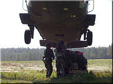 The Pathfinder Platoon is a specialist reconnaissance and special operations unit of the British Army, and an integral part of 16 Air Assault Brigade. The Pathfinder Platoon acts as the brigade's advance force and reconnaissance force. Its role includes locating and marking drop zones and helicopter landing zones for air landing operations. Once the main force has landed, the platoon provides tactical intelligence for the brigade.[21]