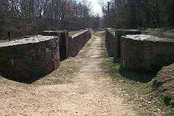 This canal, just below Harpers Ferry, was 1,760 yards long, dropped 15 feet, and had no locks either.[12] This was also called the Bullring Canal by some boatmen (the falls also being called "Bullring Falls" according to Thomas Moore's 1820 writings), and was made up of two short skirting canals with a "short sheet of water about a quarter mile" between them.[13]