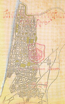 Geddes worked with his son-in-law, the architect Frank Mears, on a number of projects in Palestine. In 1919, he designed a plan for the Hebrew University of Jerusalem at the request of the psychoanalyst, Dr. David Eder, who headed the Zionist Organisation's London Branch.[35][36][37] He also submitted a report on Jerusalem Actual and Possible to the Military Governor of Jerusalem in November 1919.[38][39] In 1925 he submitted a report on town planning in Jaffa and Tel Aviv to the Municipality of Tel Aviv, then led by Meir Dizengoff.[40] The municipality adopted his proposals and Tel Aviv is the only city whose core is entirely laid out according to a plan by Geddes.