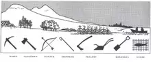 In 1909, Geddes assisted in the early planning of the southern aspect of the Zoological Gardens in Edinburgh.[26] This work was formative in his development of a regional planning model called the "Valley Section".This model illustrated the complex interactions among biogeography, geomorphology and human systems and attempted to demonstrate how "natural occupations" such as hunting, mining, or fishing are supported by physical geographies that in turn determine patterns of human settlement.[27] The point of this model was to make clear the complex and interrelated relationships between humans and their environment, and to encourage regional planning models that would be responsive to these conditions.[28]