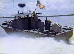 Patrol Boat, Riverine, or PBR, is the United States Navy designation for a small rigid-hulled patrol boat used in the Vietnam War from March 1966 until the end of 1971. They were deployed in a force that grew to 250 boats, the most common craft in the River Patrol Force, Task Force 116, and were used to stop and search river traffic in areas such as the Mekong Delta, the Rung Sat Special Zone, the Saigon River and in I Corps, in the area assigned to Task Force Clearwater, in an attempt to disrupt weapons shipments. In this role they frequently became involved in firefights with enemy soldiers on boats and on the shore, were used to insert and extract Navy SEAL teams, and were employed by the United States Army's 458th Transportation Company, known as the 458th Sea Tigers. The PBR was replaced by the Special Operations Craft – Riverine (SOC-R)[3][4][5]