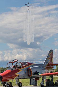 Patrulla Águila (Spanish for "Eagle Patrol"), formed 4 July 1985, is the aerobatic demonstration team of the Spanish Air Force. It is based at San Javier Air Base at the location of the academy of officers of the Spanish Air Force, near Mar Menor and La Manga, in the Murcia region of Spain. Flying seven Casa C-101 Aviojets, they are the only team to use yellow smoke and are also known for their formation landings.