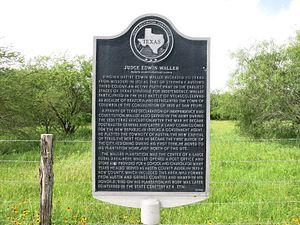 Judge Edwin Waller historical marker is west of Pattison along FM 1458 near Buller Road.