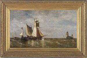 He was one of the most esteemed marine painters of his time, and early in his career he substituted a sincere study of nature for the extravagant and artificial conventionality of most of his predecessors. He painted the peaceful life of rivers, the poetry of wide estuaries, the regulated stir of roadsteads and ports. And while he thus broke away from old traditions he also threw off the trammels imposed on him by his master, the marine painter Théodore Gudin (1802–1880). Endeavouring only to give truthful expression to the nature that delighted his eyes, he sought to render the limpid salt atmosphere, the weight of waters, the transparency of moist horizons, the gem-like sparkle of the sky.[1]