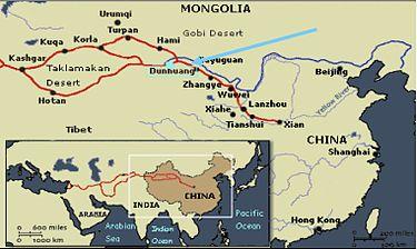In Ürümqi, Pelliot heard about a find of manuscripts at the Silk Road oasis of Dunhuang from Duke Lan. The two had a bittersweet reunion. Pelliot had been in the French legation in Peking while Duke Lan and his soldiers were besieging the foreigners during the Boxer Rebellion. They reminisced about old times and drank champagne. Duke Lan also presented Pelliot with a sample Dunhuang manuscript. Recognizing its antiquity and archaeological value, Pelliot quickly set off for Dunhuang, but arrived there months after the Hungarian-British explorer Aurel Stein had already visited the site.[11]