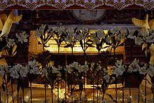 Monastery of Saint Paul the Anchorite (Deir Anba Bola) is traditionally believed to be on the site of the cave where Paul lived and where his remains are kept.[10] The monastery is located in the eastern desert mountains of Egypt near the Red Sea. The Cave Church of St. Paul marks the spot where Anthony, "the Father of Monasticism", and Paul, "the First Hermit", are believed to have met.[11]