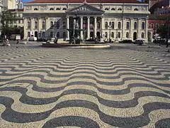 Portuguese pavement of black basalt and white limestone in Lisbon