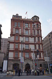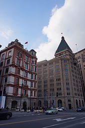 The Peace Hotel (Chinese: 和平饭店) is a hotel on The Bund in Shanghai, China, which overlooks the surrounding areas.[1] The hotel has two different buildings. The Sassoon House, originally housed the Cathay Hotel and is today the Fairmont Peace Hotel run by Fairmont Hotels and Resorts of Canada. The South Building was built as the Palace Hotel and is today a residence and studio for artists, known as The Swatch Art Peace Hotel. The two buildings both face the Bund, but are divided by Nanjing Road.[2]