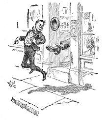 Henry "Hennery" Peck, popularly known as Peck's Bad Boy, is a fictional character created by George Wilbur Peck (1840–1916).[1] First appearing in the 1883 novel Peck's Bad Boy and His Pa, the Bad Boy has appeared in numerous print, stage, and film adaptations. The character is portrayed as a mischievous prankster, and the phrase "Peck's bad boy" has entered the language to refer to anyone whose mischievous or bad behavior leads to annoyance or embarrassment.[2] Described as "a vicious little swaggerer" and "no more than a callous brute",[3] Hennery's antics were more mean-spirited than those of earlier boyhood characters like Huckleberry Finn,[4] and modern criticism views the violence and racism in the original stories as objectionable or politically incorrect.[5][6] The inspiration for Hennery—the Bad Boy—came from Edward James Watson, who was a telegraph messenger boy that Peck met in the early 1880s. Apparently Watson thought up many of the stories used by Peck. Mr Watson had in his possession a letter from Peck "To my friend E. J. Watson, who, as a boy, gave me the first idea that culminated in the Peck's Bad Boy Series".
