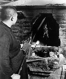 Peking duck is originally roasted in a closed oven (Chinese: 焖炉), and Bianyifang is the restaurant that keeps this tradition. The closed oven is built of brick and fitted with metal griddles (Chinese: 箅子; pinyin: bì zi). The oven is preheated by burning Gaoliang sorghum straw (Chinese: 秫秸; pinyin: shú jiē) at the base. The duck is placed in the oven immediately after the fire burns out, allowing the meat to be slowly cooked through the convection of heat within the oven.[11] Controlling the fuel and the temperature is the main skill. In closed-oven style, duck meat is combined well with the fat under the skin, and therefore is juicy and tender.