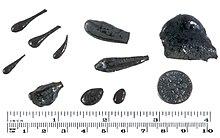 Pele's tears are interesting to volcanologists because trapped within the glass droplet are bubbles of gas and particles called vesicles.[3] When these are analysed they can provide a great deal of information about the mechanisms of an eruption. For instance, the shape of a vesicle can provide an indication of the velocity of the eruption. When vesicles form within the lava they are spherical in shape. If the eruption is turbulent the vesicles will deform and become elongated in shape. If the velocity is low they will retain their spherical shape as in the case of Pele's tears.