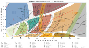 - ^ Wei, Chunjing; Powell, Roger; Clarke, Gordon (2004). "Calculated phase equilibria for low‐ and medium‐pressure metapelites in the KFMASH and KMnFMASH systems". Journal of Metamorphic Geology. 22 (5): 495–508. doi:10.1111/j.1525-1314.2004.00530.x.