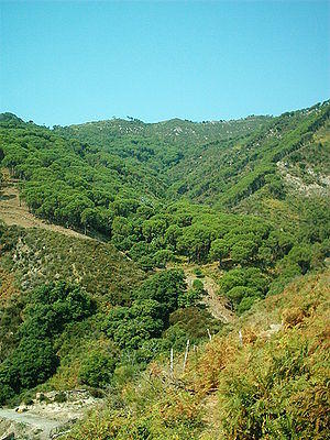 Vegetation includes holm oak, oak, cork oak, beech, pine and chestnut, which once formed large forests but are now, mostly due to human presence, reduced to sparse woods so that the landscape is largely steppe-like. Several pine woods have been reconstituted by the local authorities since the 1950s. An ancient path, Dorsale dei Peloritani, runs along the ridge line from Monte Dinnammare above the Strait of Messina to the Rocca di Novara.