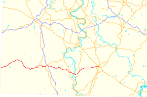 PA 21 enters Fayette County in the borough of Masontown. It bypasses Masontown to the north and merges with PA 166 (Main St.). After leaving Masontown, the southernmost point on the route, PA 21 becomes McClellandtown Road. It turns to the northeast entering German Township and leaving PA 166. Passing through McClellandtown, PA 21 traverses more densely populated western Fayette County entering South Union Township.[5] The highway enters South Union Township in the village of Uledi. It intersects Dixon Boulevard before entering the city of Uniontown. It has an interchange with U.S. Route 40/U.S. Route 119 near Cherry Tree Square. It passes the Uniontown Hospital before ending at US Route 40 Business (Main St.).[6]