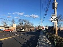 Pennsylvania Route 313 (PA 313) is a mostly 2-lane, 18-mile-long (29 km) state highway entirely within Bucks County, Pennsylvania. The western end of PA 313 is at an intersection with PA 309 and PA 663 in Quakertown. The eastern end is at an intersection with PA 263 in the Doylestown Township community of Furlong. PA 313 is signed an east–west road, although it runs almost purely northwest–southeast through most of its course. It is a major arterial road in central and northern Bucks County as it connects several communities including Quakertown, Dublin, and Doylestown.