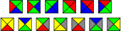 The matching rules distinguish sides of the tiles, and entail that tiles may be juxtaposed in certain particular ways but not in others. Two ways to describe these matching rules are shown in the image on the right. In one form, tiles must be assembled such that the curves on the faces match in color and position across an edge. In the other, tiles must be assembled such that the bumps on their edges fit together.[9]