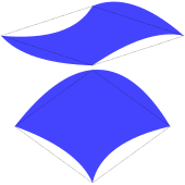 Penrose's second tiling uses quadrilaterals called the "kite" and "dart", which may be combined to make a rhombus. However, the matching rules prohibit such a combination.[28] Both the kite and dart are composed of two triangles, called Robinson triangles, after 1975 notes by Robinson.[29]