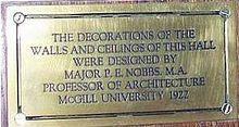 Percy Erskine Nobbs (August 11, 1875 – November 5, 1964) was a Canadian architect who was born in Haddington, Scotland, and trained in the United Kingdom. Educated at the Edinburgh Collegiate School and Edinburgh University, he spent most of his career in the Montreal area.[1] Often working in partnership with George Taylor Hyde, Nobbs designed a great many of what would become Montreal's heritage buildings and was a key Canadian proponent of the Arts and Crafts Movement in architecture. He served as the director of McGill University's School of Architecture for ten years and designed many buildings on the campus as well as McGill's Coat of Arms, which continues to be used today.[2]