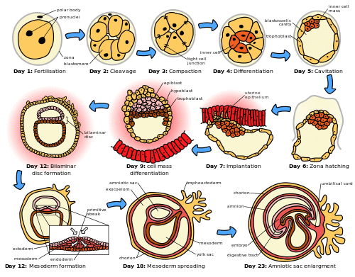 - ^ Wilcox AJ, Baird DD, Weinberg CR (1999). "Time of implantation of the conceptus and loss of pregnancy". N. Engl. J. Med. 340 (23): 1796–9. doi:10.1056/NEJM199906103402304. PMID 10362823.
